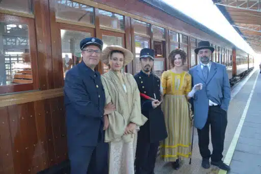 Este tren turístico utiliza coches históricos de madera, con más de un siglo de antigüedad. El trayecto se inicia en la antigua estación de Madrid-Delicias, actual sede del Museo del Ferrocarril de Madrid, y llega hasta Aranjuez, un sitio declarado Paisaje Cultural Patrimonio de la Humanidad por la UNESCO. Durante el viaje, el personal vestido de época recrea la manera de viajar de finales del siglo XIX y principios del XX, ofreciendo una auténtica inmersión histórica.